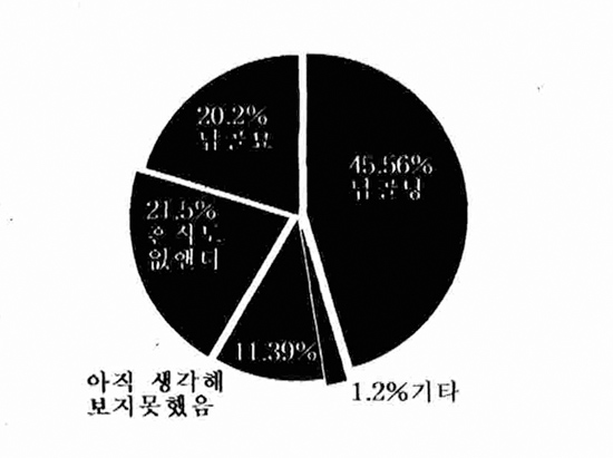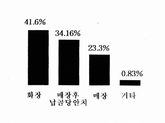 반면 응답자 가운데 23.3%가 전통적으로 내려오고 있는 유교적 풍습등의 이유로 매장(묘지)를 원하고 있다고 응답, 아직도 매장제도에 대한 깊은 애착을 갖는 것으로 알려졌다.
