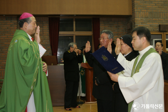▲ 2008년 1월 30일 대구대교구 100주년 준비위 출범식에서 준비위원들이 최영수 대주교 앞에서 교구 100주년 준비에 최선을 다할 것을 다짐하며 선서를 하고 있다.