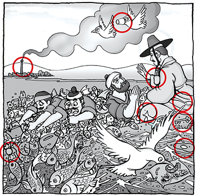 숨은 그림 : 물고기, 옷솔, 낚싯바늘, 옷걸이, 갈고리, 뱀, 나비