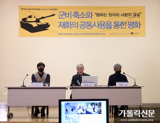 주교회의 정의평화위원회(위원장 김선태 주교)와 서울대교구 정의평화위원회(위원장 황경원 신부)는 12월 6일 서울 중곡동 한국천주교중앙협의회 신관 강당에서 ‘군비 축소와 재화의 공동사용을 통한 평화’를 주제로 제11회 사회교리주간(12월 5~11일) 기념 세미나를 열었다.