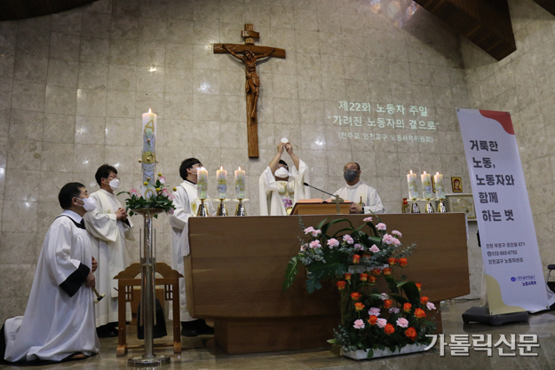 인천교구 사회사목국 노동사목위원회(위원장 양성일 시메온 신부, 이하 위원회)와 십정동본당(주임 김진규 도날드 신부)은 5월 7일 인천 십정동성당에서 제22회 노동자 주일 기념미사를 봉헌했다.